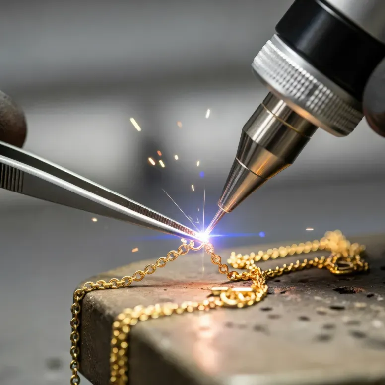 Pour les pièces délicates ou les métaux fins, la soudure au laser assure une finition propre, nette et presque invisible — idéale pour préserver l’intégrité de vos bijoux les plus précieux.